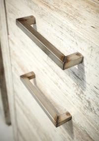 Kleine, stimmige Details wie die liebevoll mit Patina überzogenen Griffe aus Metall machen den besonderen Charme der Wohnwand aus und verleihen der Wohnwand den Hauch von Vintage. Stilistisch passt dieses Anbauwand zu jeder Einrichtung hervorragend. Die Kombination aus klaren, geraden Linien und dem Shabby Chic Decor wertet ein modernes, mit Designermöbeln ausgestattetes Loft ebenso mühelos auf wie ein warmes, wohnliches Landhaus-Ambiente. Mit 1 Glastür rechts- sowie 2 Holztüren linksseitig bietet die große Vitrine viel Platz für Geschirr, Dekorationen und persönliche Dinge. Die 3 Glasböden werden hier mit der Beleuchtung gekonnt in Szene gesetzt. Hinter der Holztür befinden sich 2 weitere Einlegeböden. Das Highboard enthält 1 Holztür, 1 Schubkasten und 1 Glastür, während das Wandboard den optischen Rahmen abschließt.